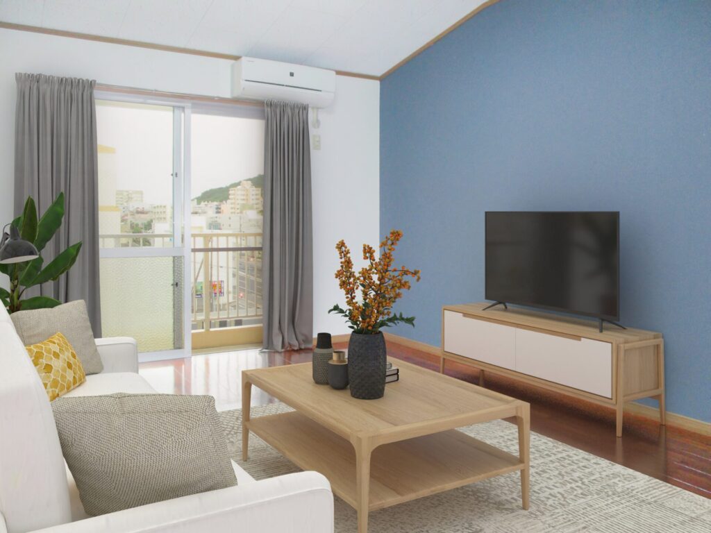 そこで、私共では実際に家具を配置するのではなく、デジタル上でお部屋の画像に架空の家具を配置する